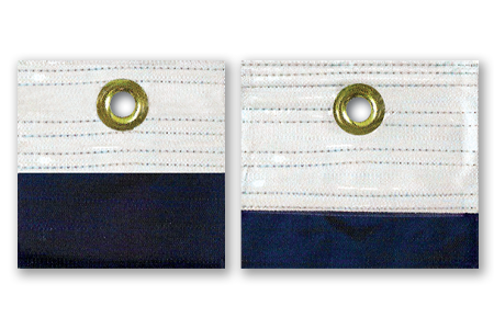 8′ X 12′ and larger flags include a heavy-duty plastic reinforcement sleeve at each grommet location.