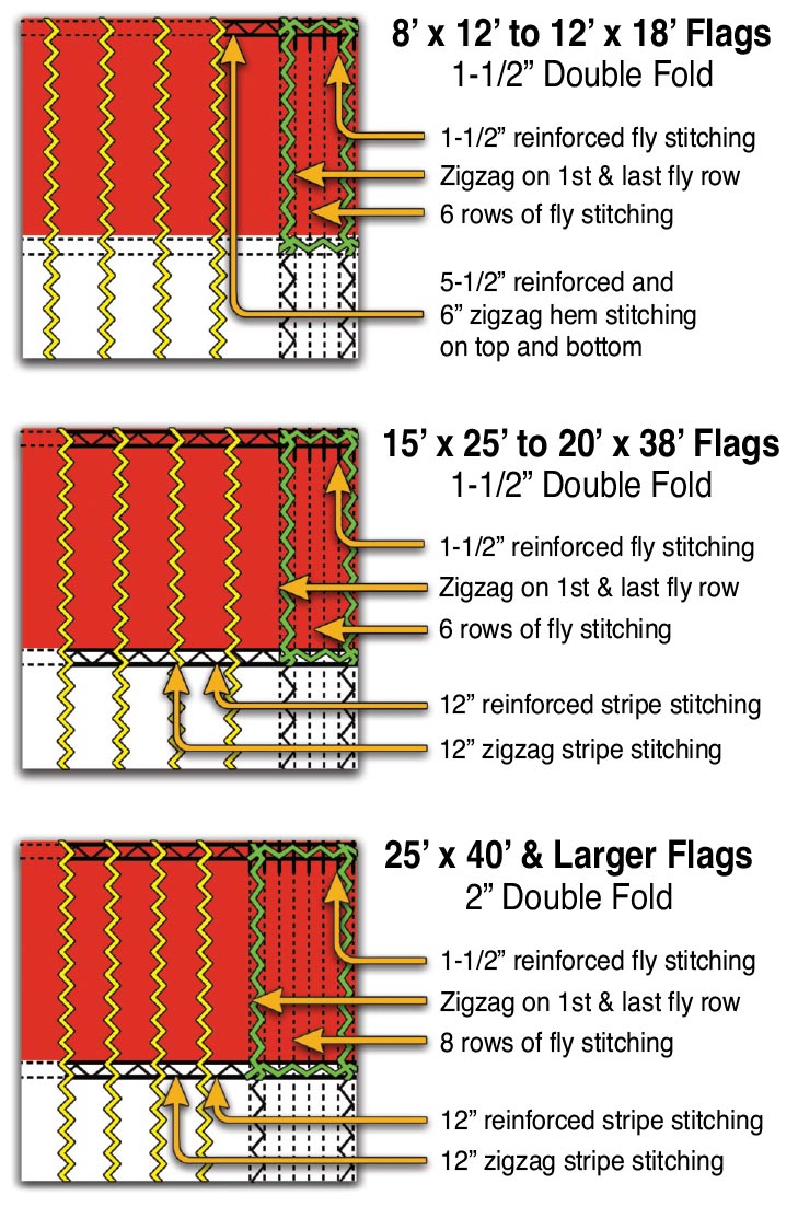 All of our Poly-Max™ & Endura-Nylon™ American Flag Fly-End Hems are Reinforced.